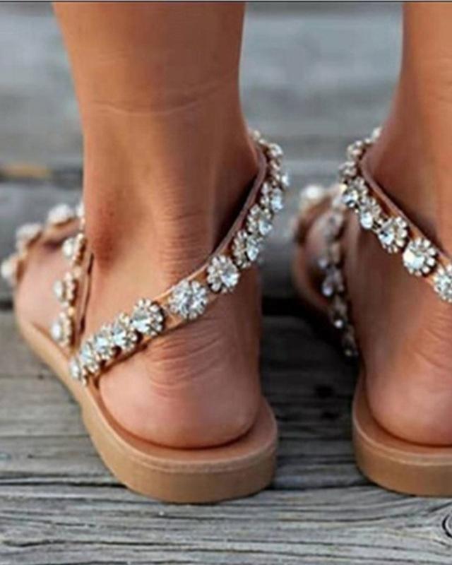 💥QVC Recommend💥Melarey Rhinestone Faux Leather Sandals