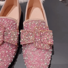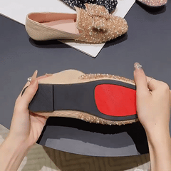 Be Comfy while staying on the trend with our super chic style Square Toe Rhinestone Flat Bow Shoes