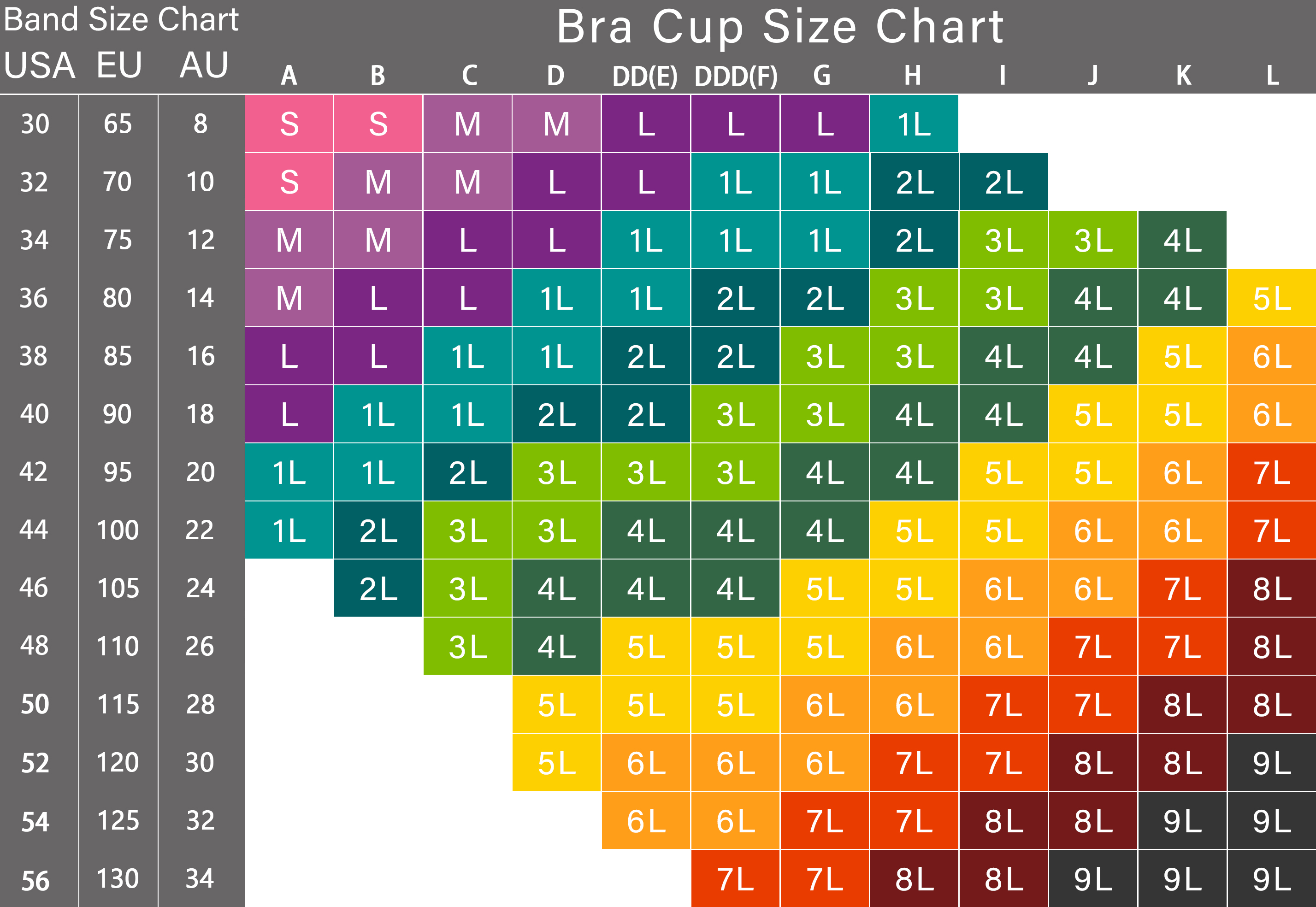 If you don’t know the size of your bra, you can order it according to the size chart at first(Size Chart for USA, Australia, Europe).(1L=XL,2L=2XL...)