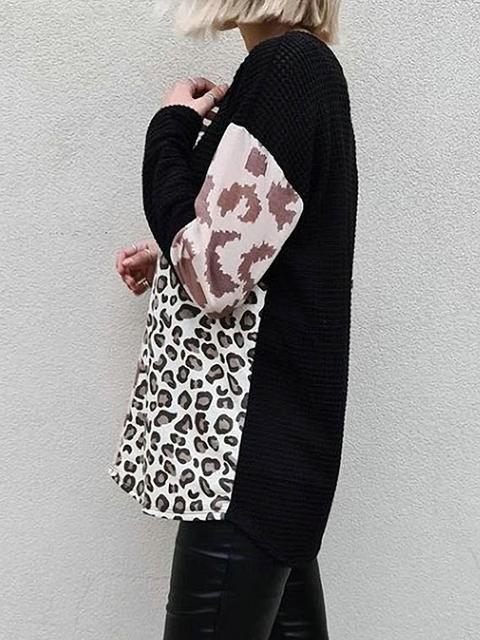 💥QVC Recommend💥Leopard Print Patchwork Knitted Top