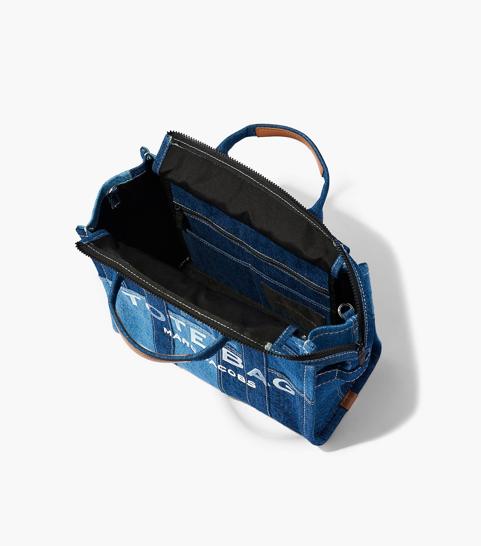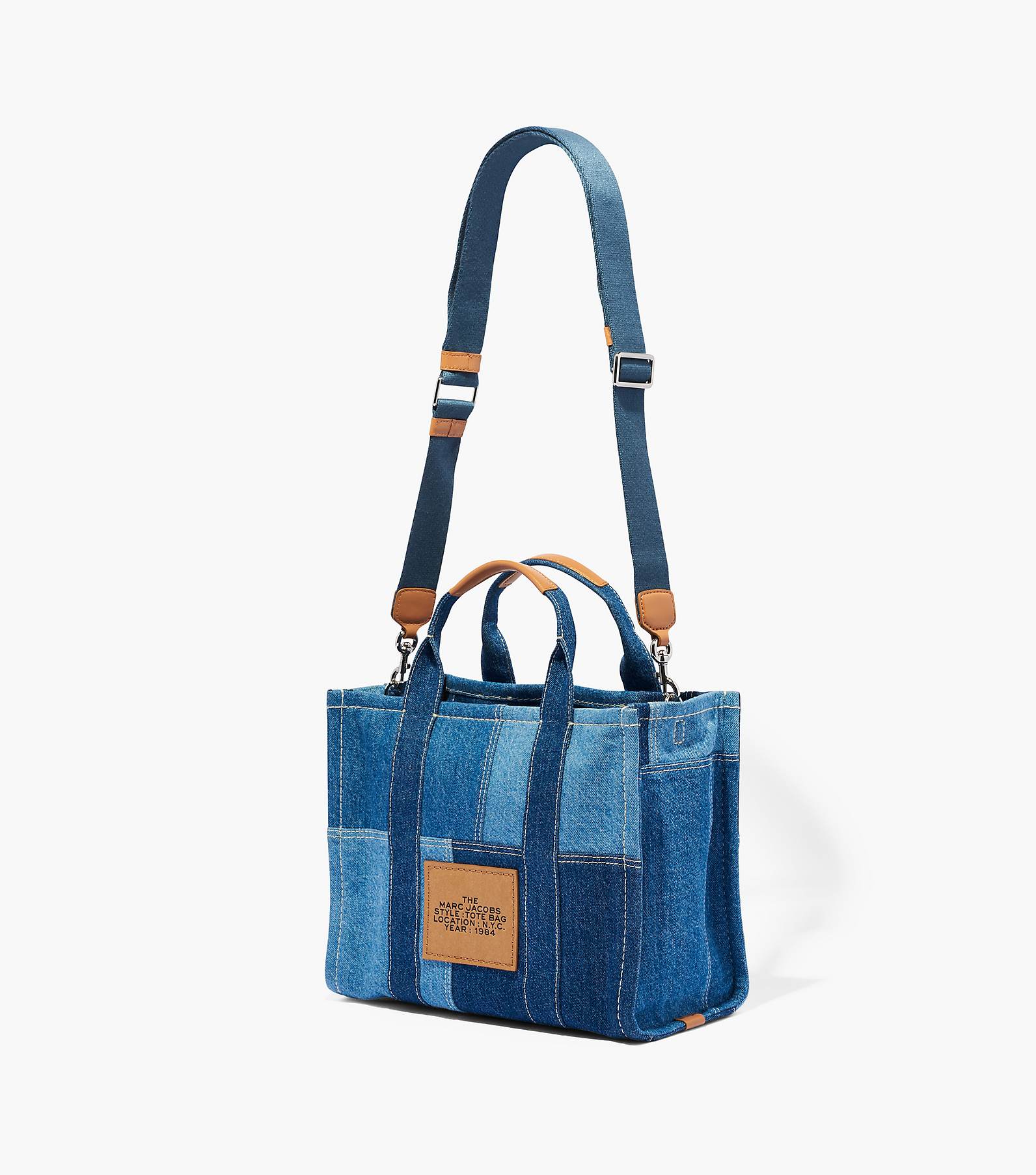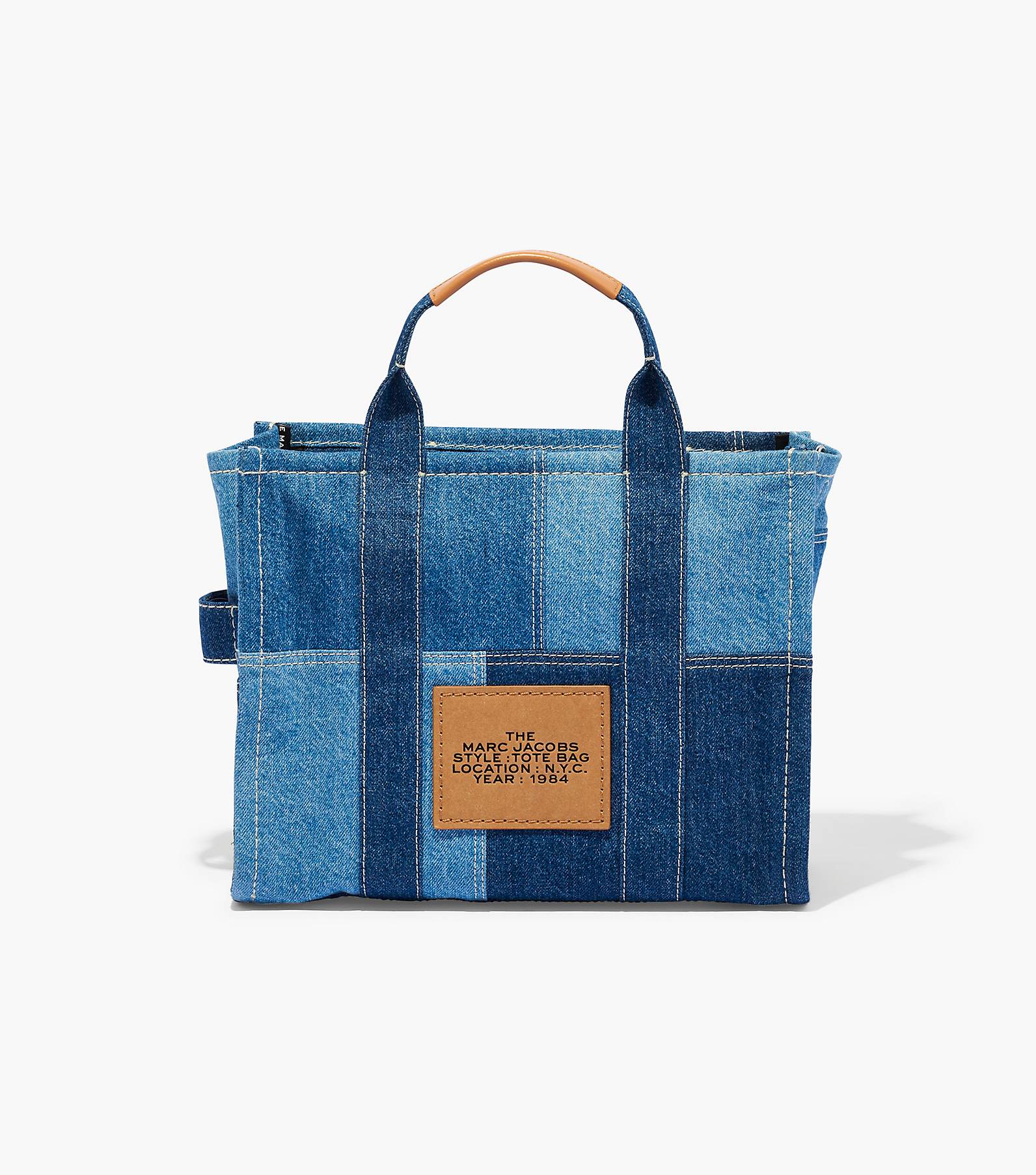 Our go-to carryall that’s ready for anything you throw in it. This small tote features a zipper closure and can be worn by the top handle or the removable crossbody strap. Now available in this season's patchwork denim fabrication, inspired by our favorite archival denim moments. Refer to our size guide to view all the different tote bag offerings.