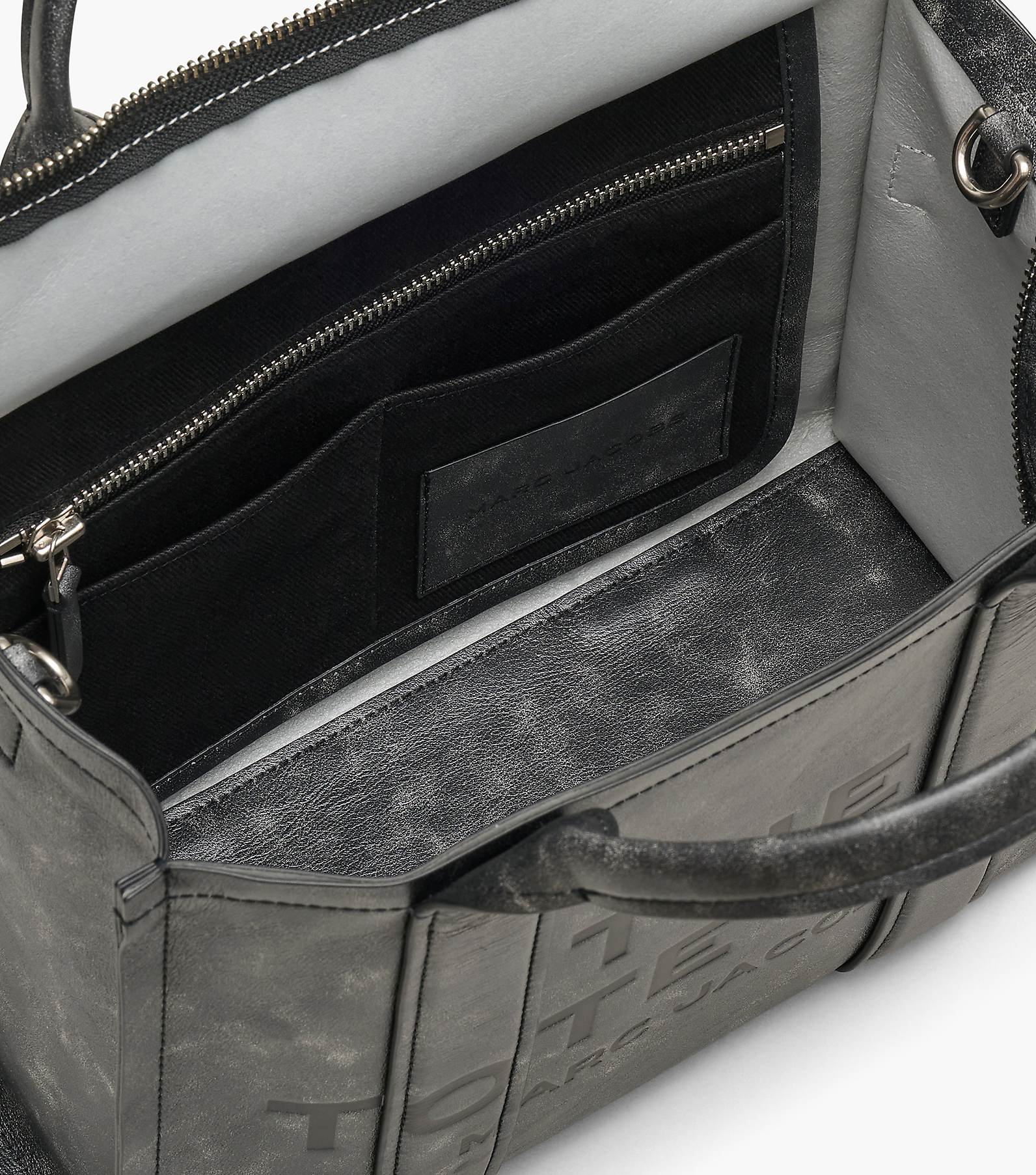 This version of our Medium Tote is specially crafted in distressed leather. A chunky top zip closure, two slip pockets, one zip pocket and the namesake branding make the medium tote perfect for an errand or the office. Carry yours by the top handles or attach the adjustable, removable crossbody strap for hands-free styling.​